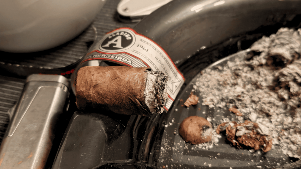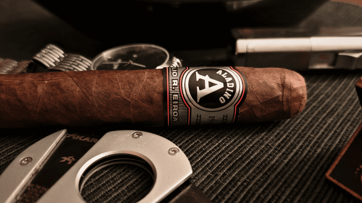 Kawa z syropem czekoladowym i odrobiną śmietanki, rześka cytrusowość przełamująca słodycz, a na niezwykle długim finiszu rodzynki wymieszane z suską sechlońską, drewnem, czarnym pieprzem. Moje kubki smakowe smagały momentami również nuty iglaste z piwa IPA w starym stylu, a nawet marcepana w ostatniej tercji. To wszystko podane w tak gęstym dymie, że wręcz nie zalecam cygara Aladino Fuma Noche osobom palącym w domowym zaciszu. Prędzej w garażu, na dworze czy w cigar lounge. Chyba że macie oczyszczacz powietrza lub wyciąg, wtedy może się udać. Mimo otwartych okien uwędziłem się, jak śliwka do wigilijnego kompotu. Możecie zobaczyć to w video recenzji Aladino Fuma Noche.