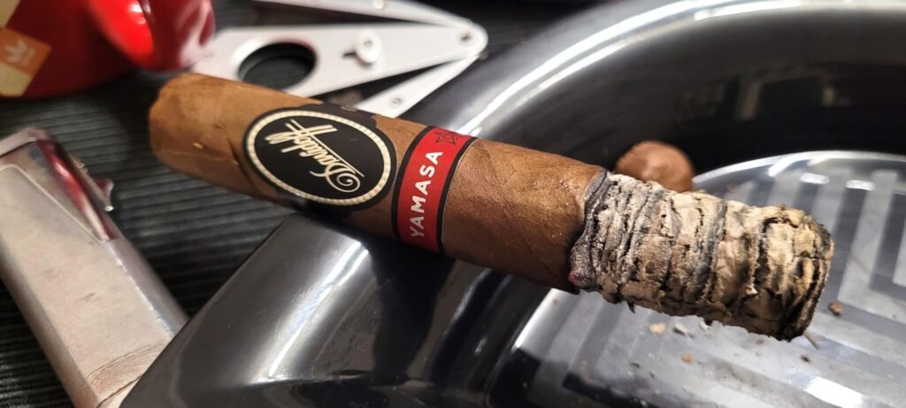 Ziemia, duża dawka pieprzności, nieco korzenności, drewno dębowe, miks delikatnych orzechów, odrobina cytrusów, papryka z grzybami, szczypta ziarenek kawy, a to wszystko podane w wysuszającym, zalegający w ustach i gardle dymie. Zabrakło mi w degustacji cygara Davidoff Yamasa Robusto balansu, intensywności smaków oraz tego obiecanego słodko-korzennego dymu. Mój egzemplarz był technicznie również daleki od wysokiej jakości zwinięcia, którą chwali się marka. Spalał się nierówno, powstawały cyple z niespalonego tytoniu, wyraźne ząbki, momentami wżery. Starałem się przymykać na to oko, mając w głowie przeczytane w wywiadzie słowa Henke Kelnera o grubości liści z Yamasa i problemach z palnością. To jednak miało mieć miejsce w pierwszych latach eksperymentów z tytoniem w tamtym regionie, obecnie, nie powinno mieć miejsca. Przy cenie detalicznej, w jakiej sprzedawane są te cygara, jakość powinna być wręcz fantastyczna. Degustacja nie zaspokoiła pokładanych w cygarze nadziei. Moje zmagania z Davidoff Yamasa Robusto i moje miny w kolejnych tercjach możecie zobaczyć w video recenzji.